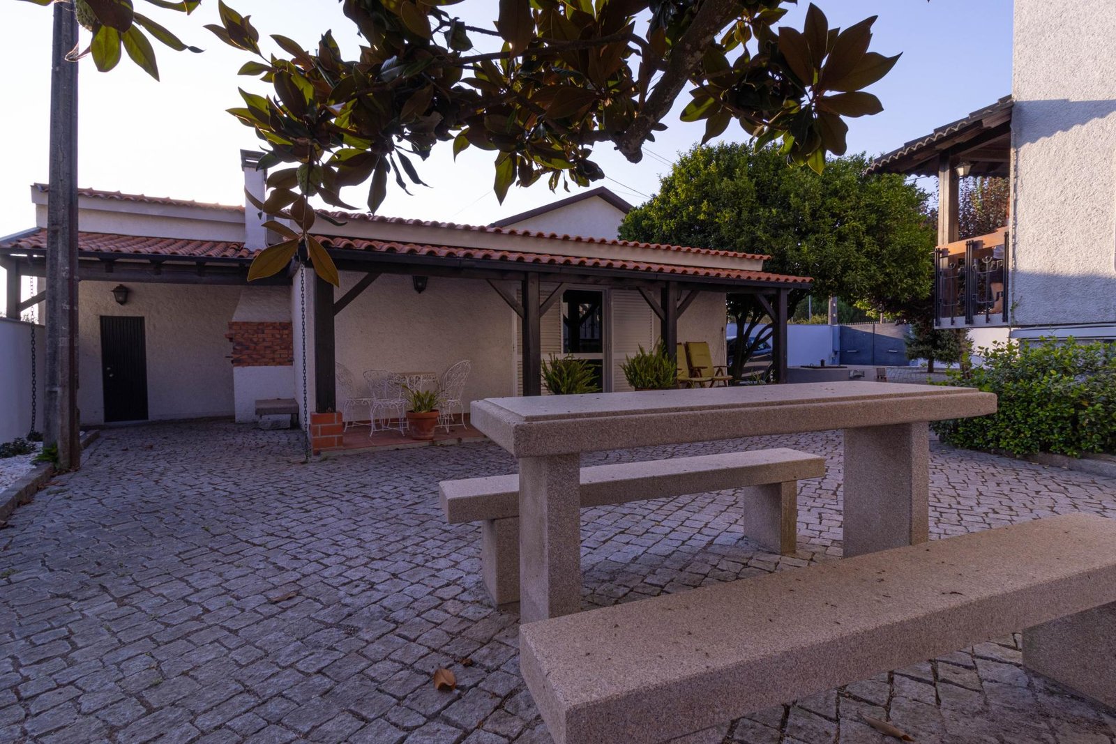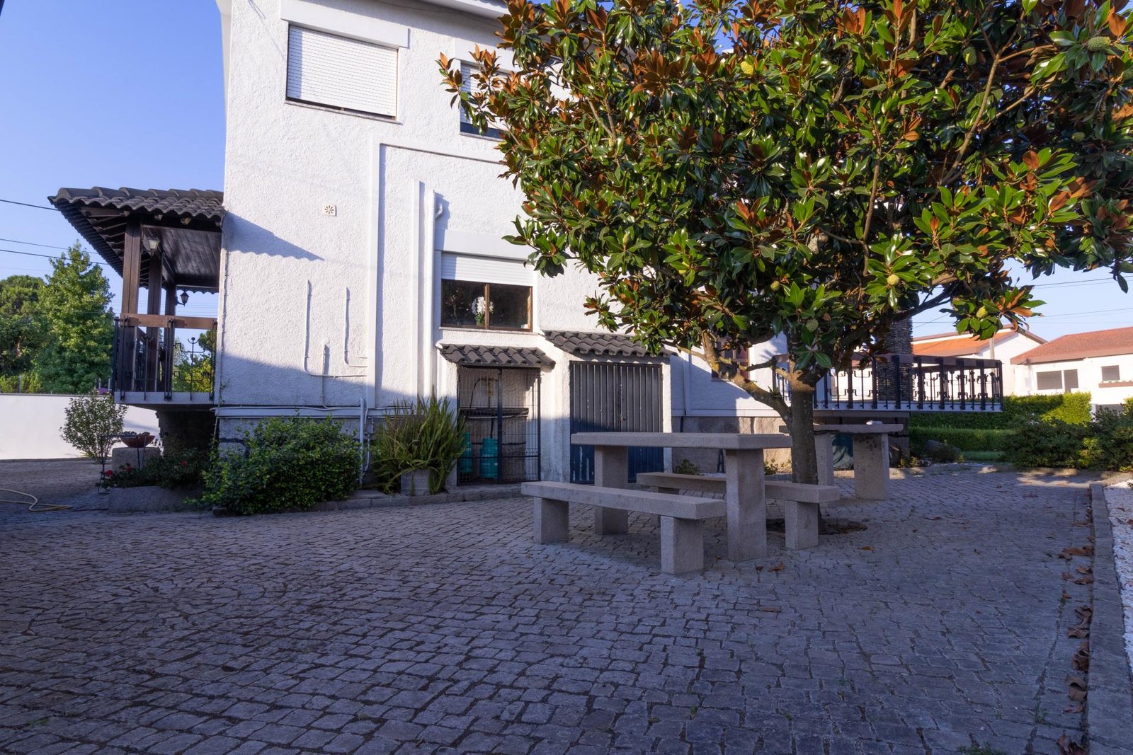 No exterior, um jardim espaçoso convida ao lazer, com zona de convívio, poço com rega automática e portão automático, oferecendo conforto e praticidade em todos os detalhes.