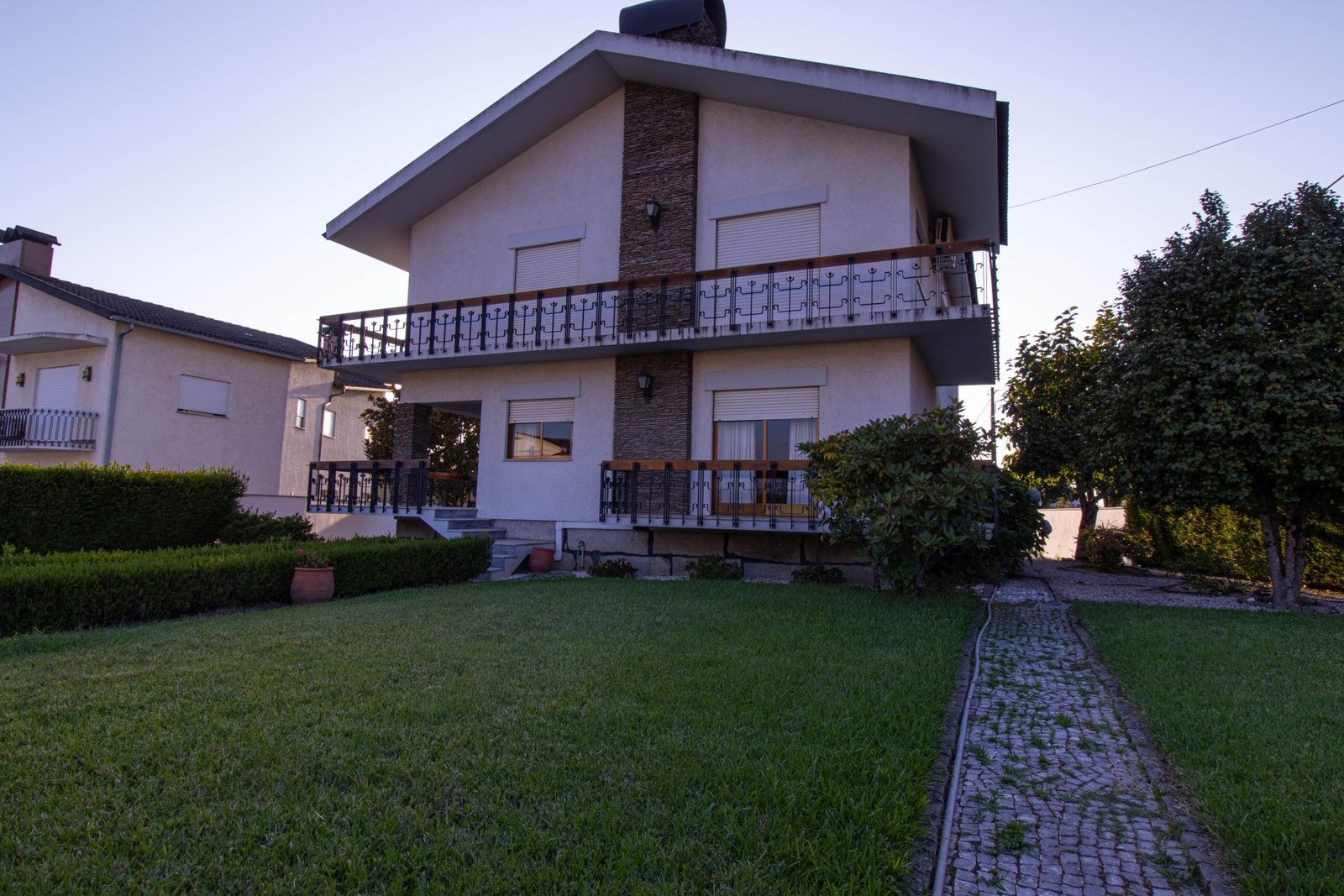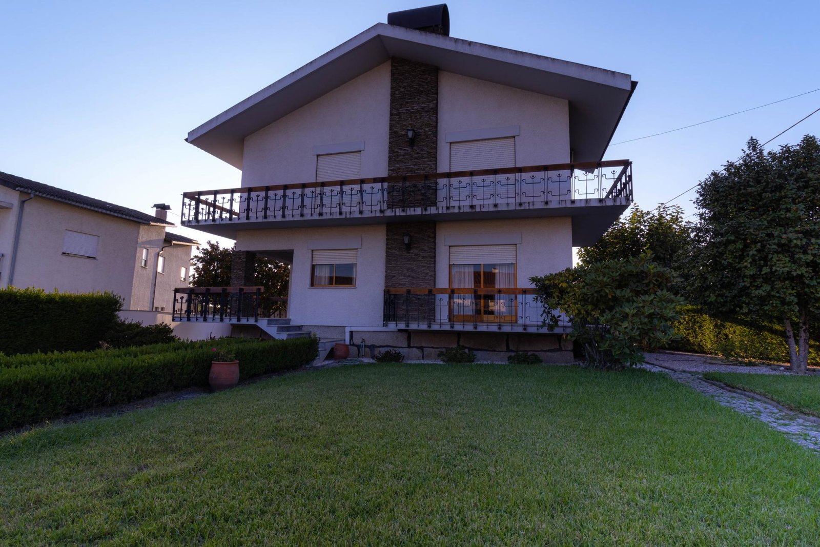 No primeiro piso, encontra quatro quartos confortáveis, três com roupeiros embutidos e ar condicionado, dois deles com varanda e uma vista deslumbrante para a Serra da Estrela. A casa conta ainda com aquecimento central, salas equipadas com recuperador de calor ou lareira, 3 casas de banho e um anexo preparado para convívios, com arrumos, garagem e churrasqueira.
