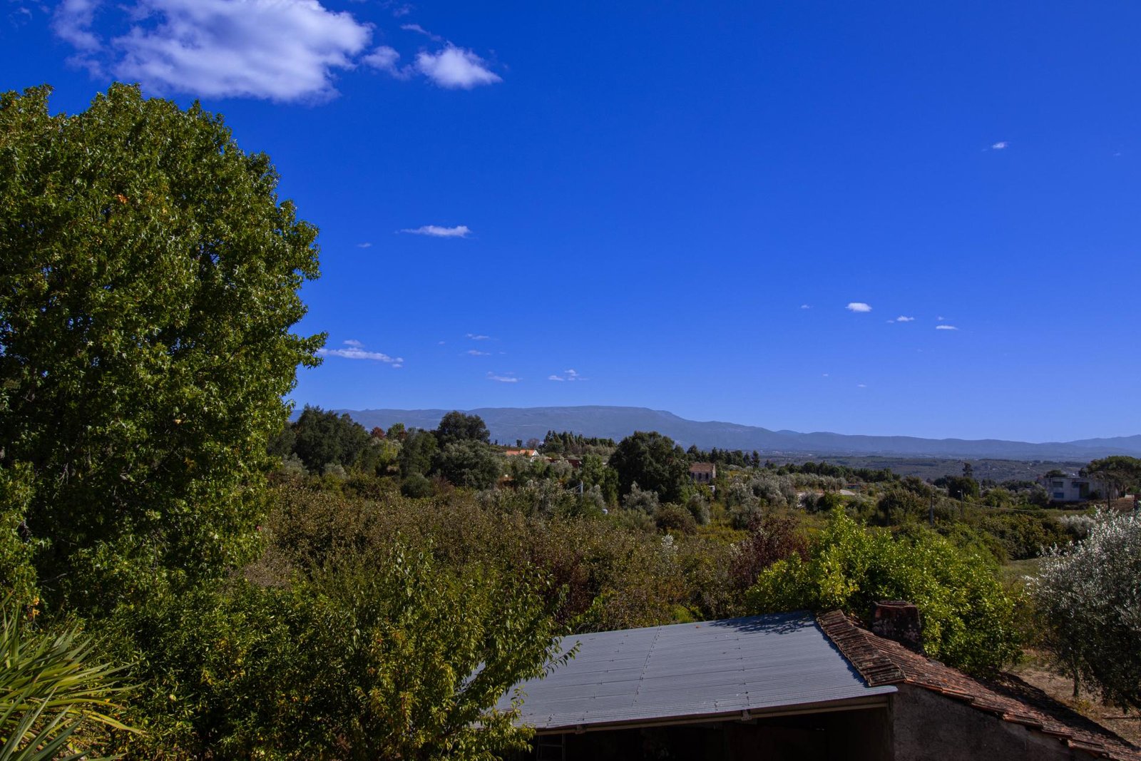 No exterior existe terreno com árvores de fruto e poço, onde é possível desfrutar da tranquilidade da natureza, além de uma vista para a Serra da Estrela.