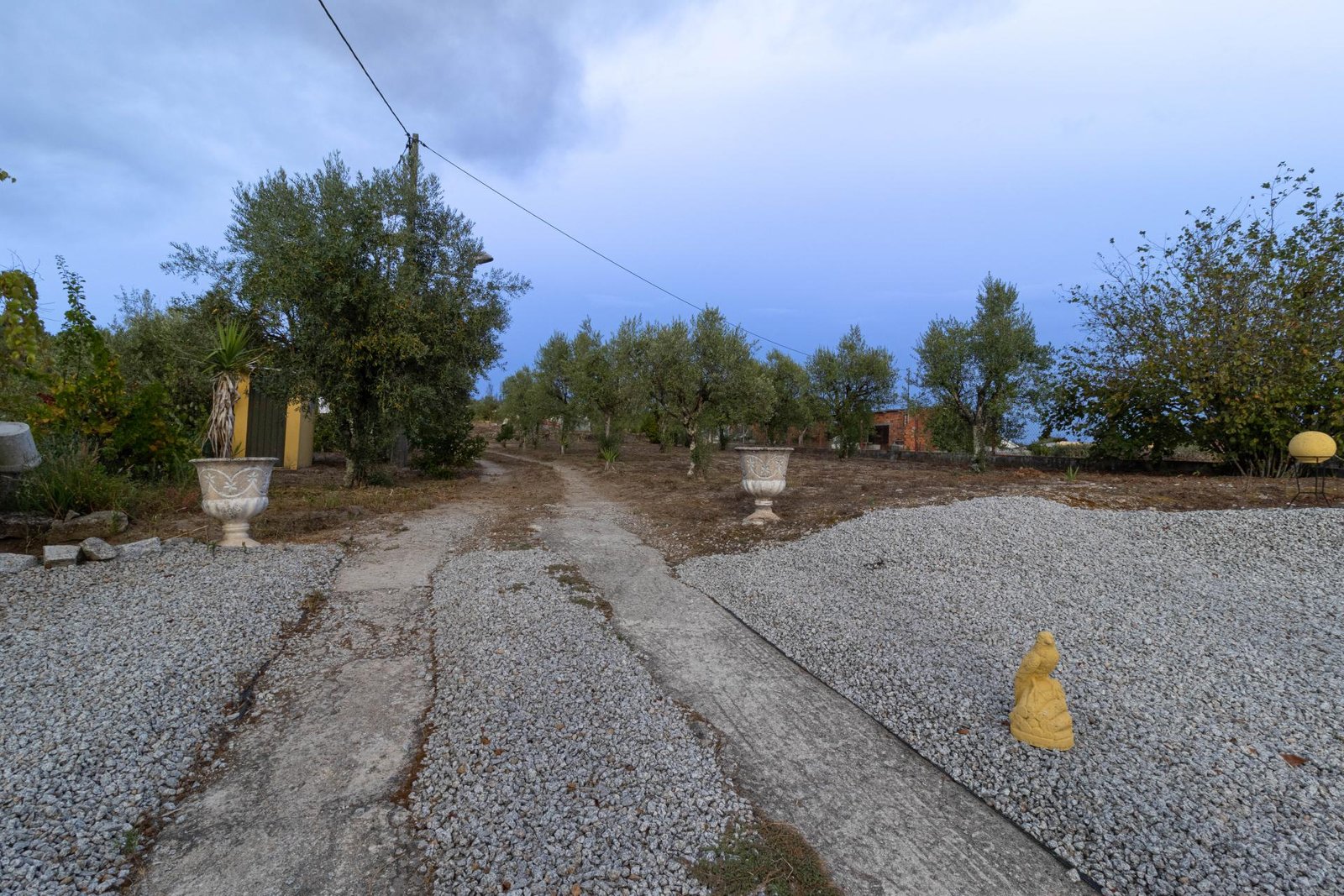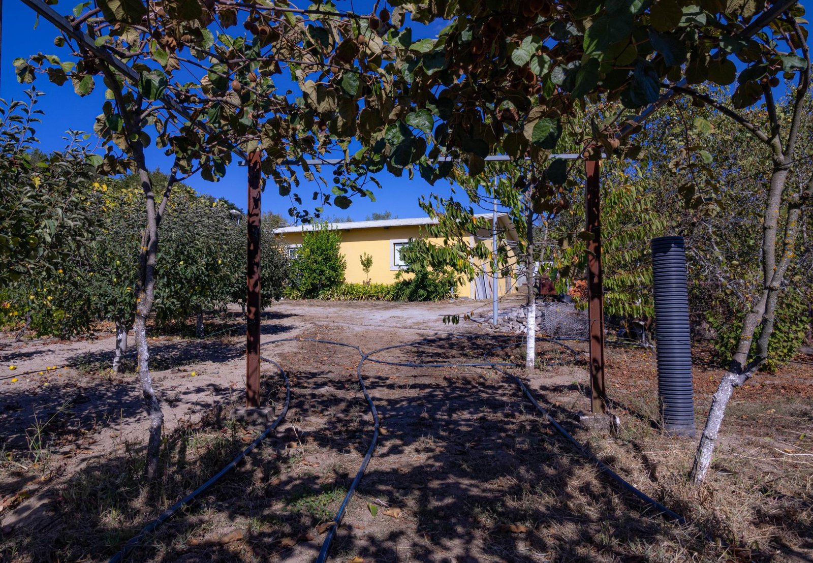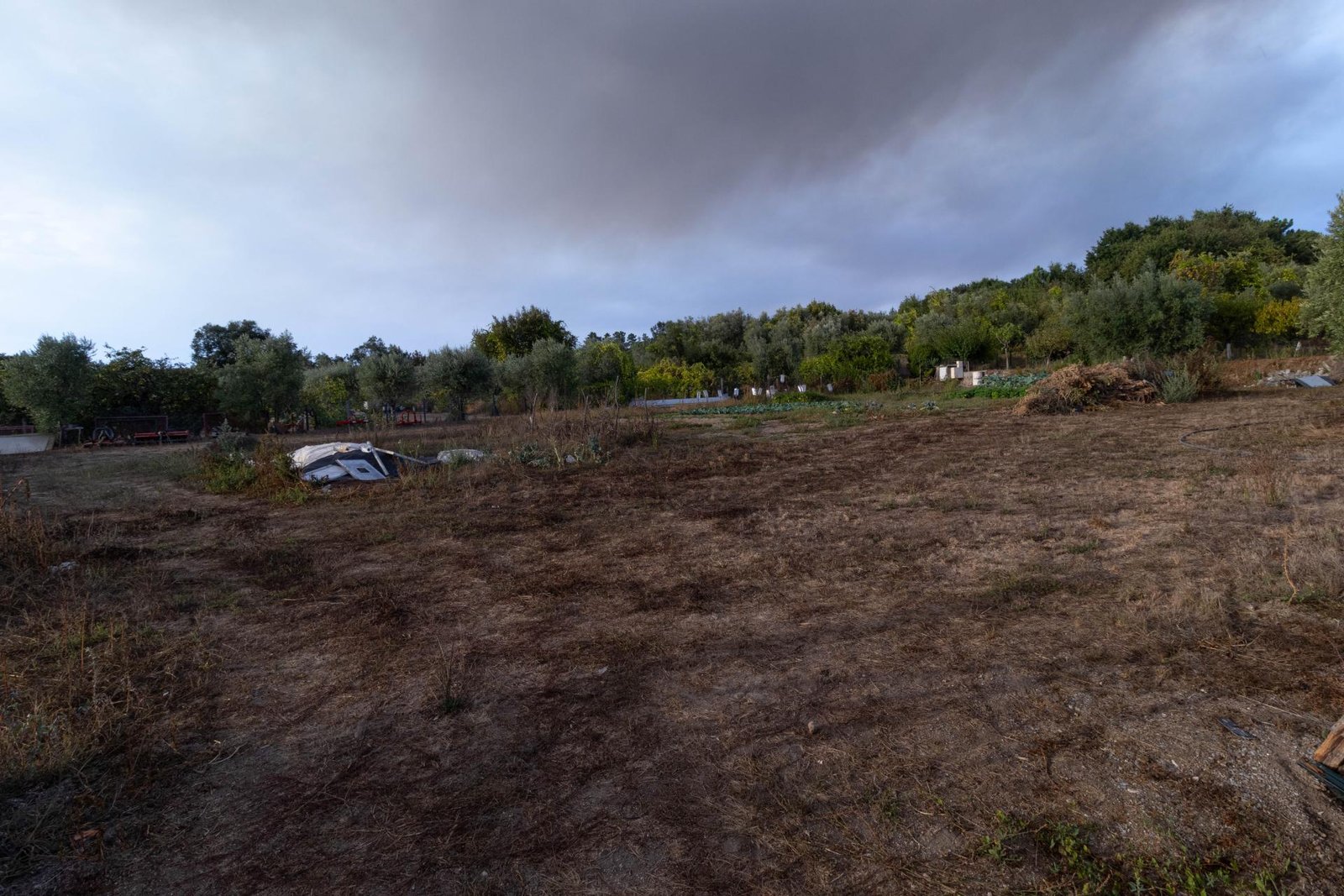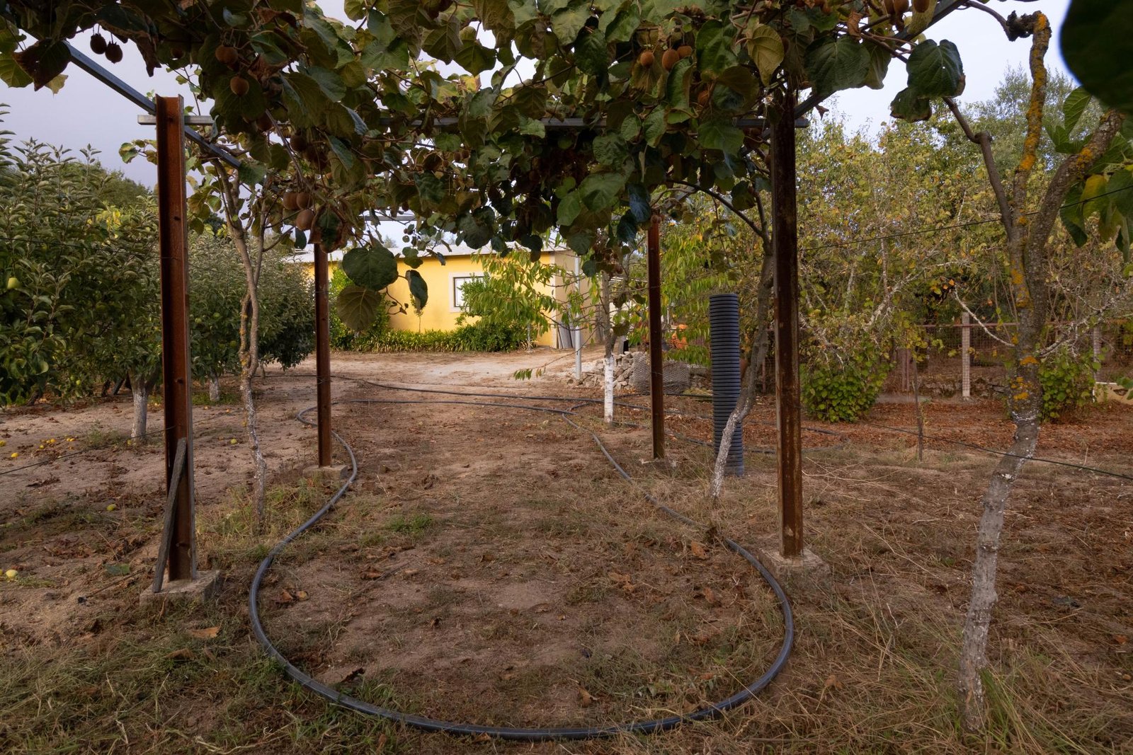 O terreno inclui 60 oliveiras, vinha e uma grande variedade de árvores de fruto, proporcionando um ambiente fértil e produtivo, com vista para a Serra da Estrela.