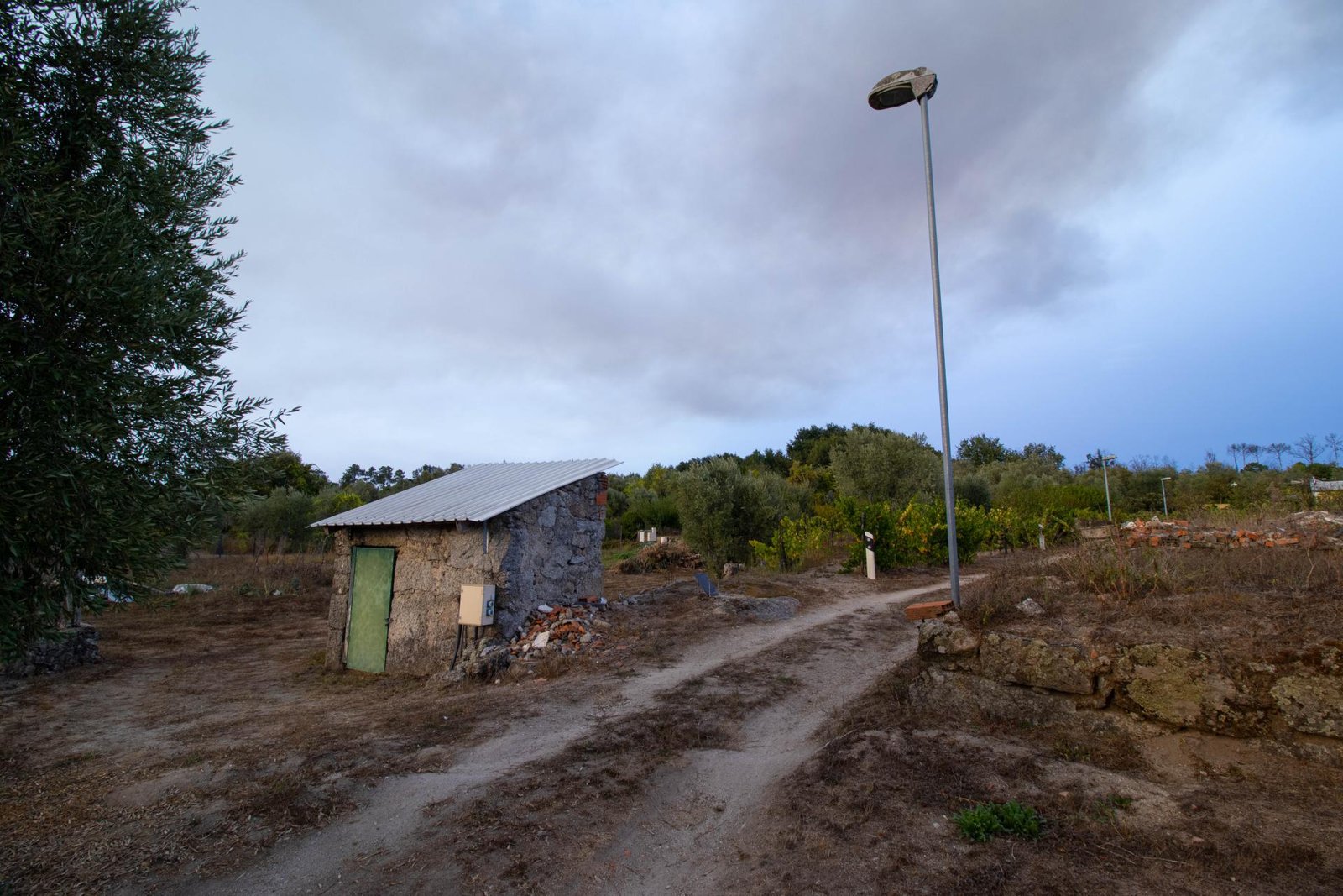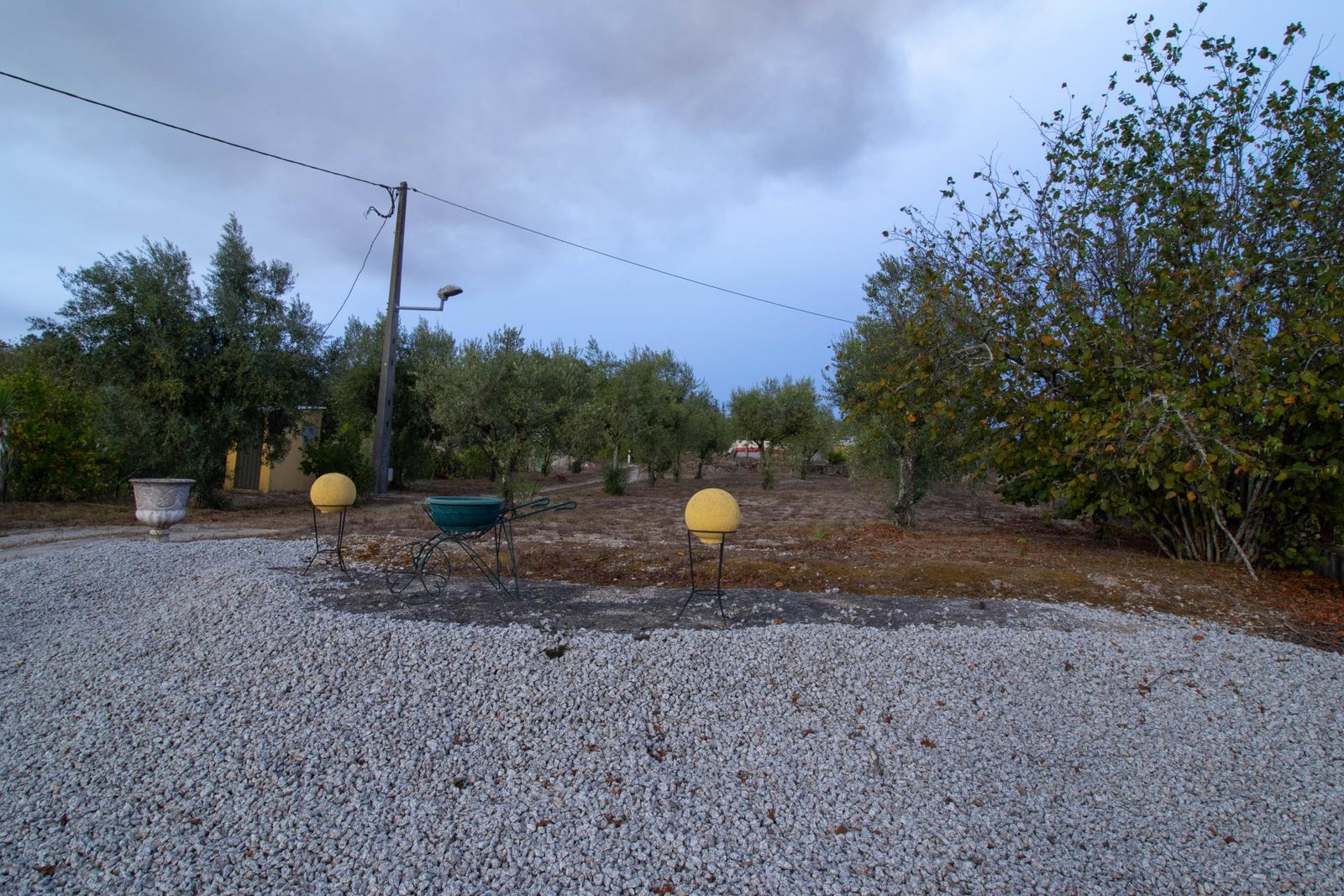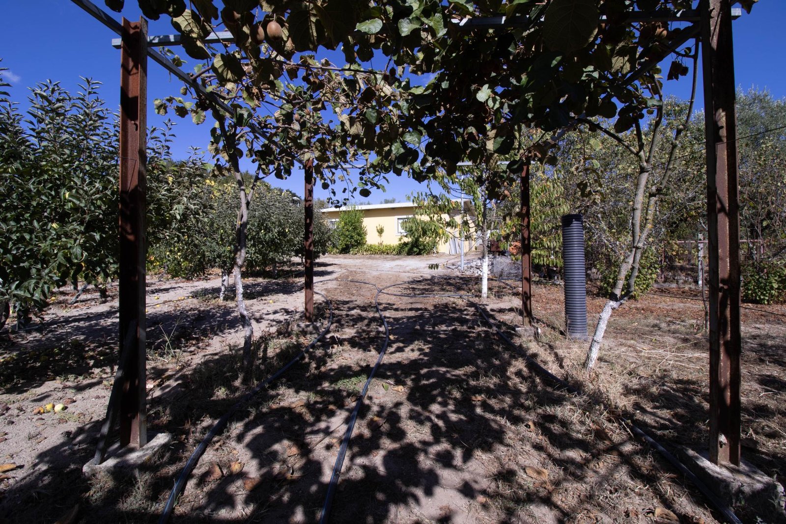 O terreno inclui 60 oliveiras, vinha e uma grande variedade de árvores de fruto, proporcionando um ambiente fértil e produtivo, com vista para a Serra da Estrela.