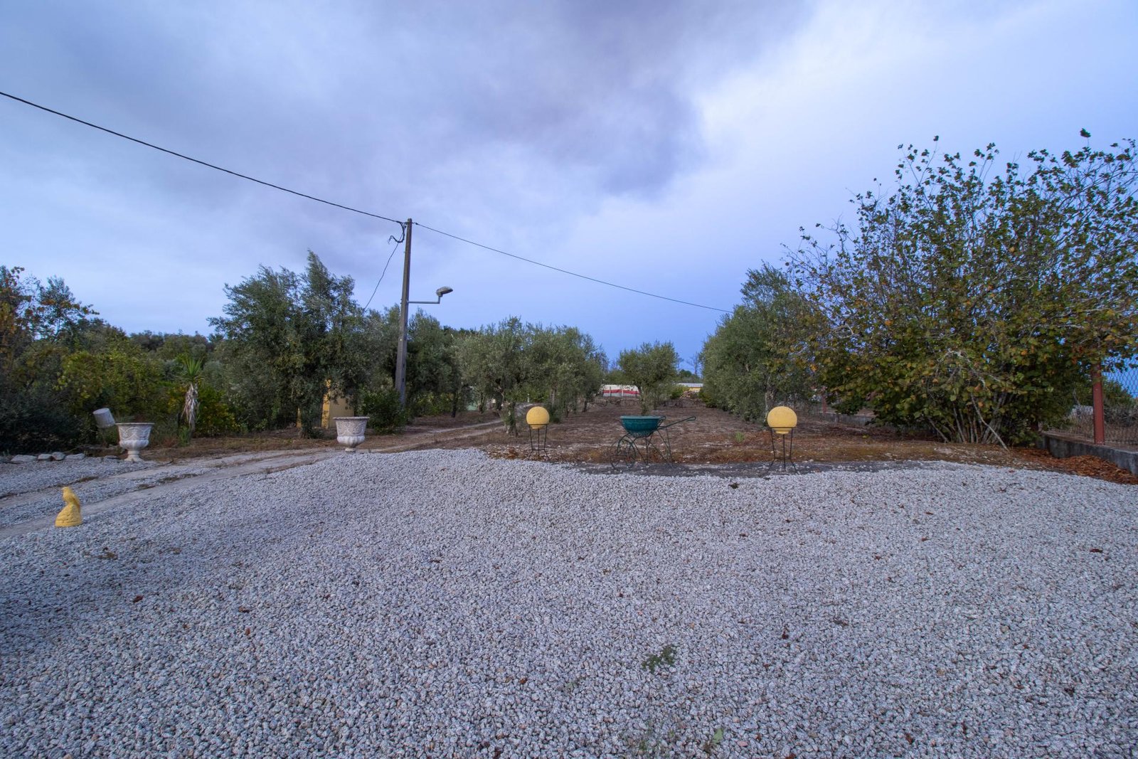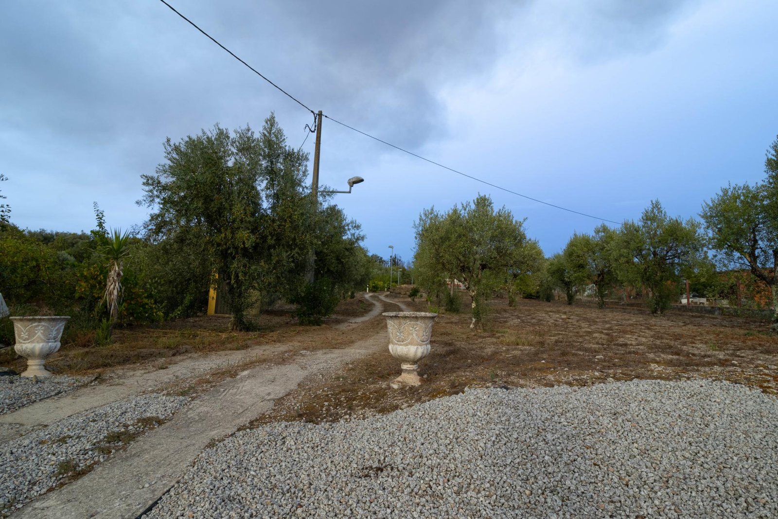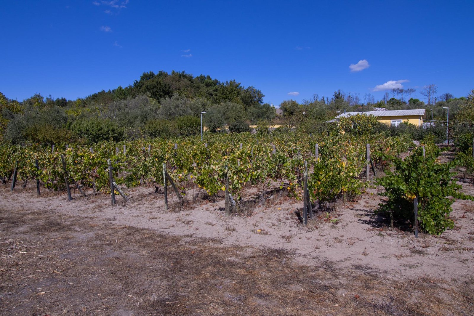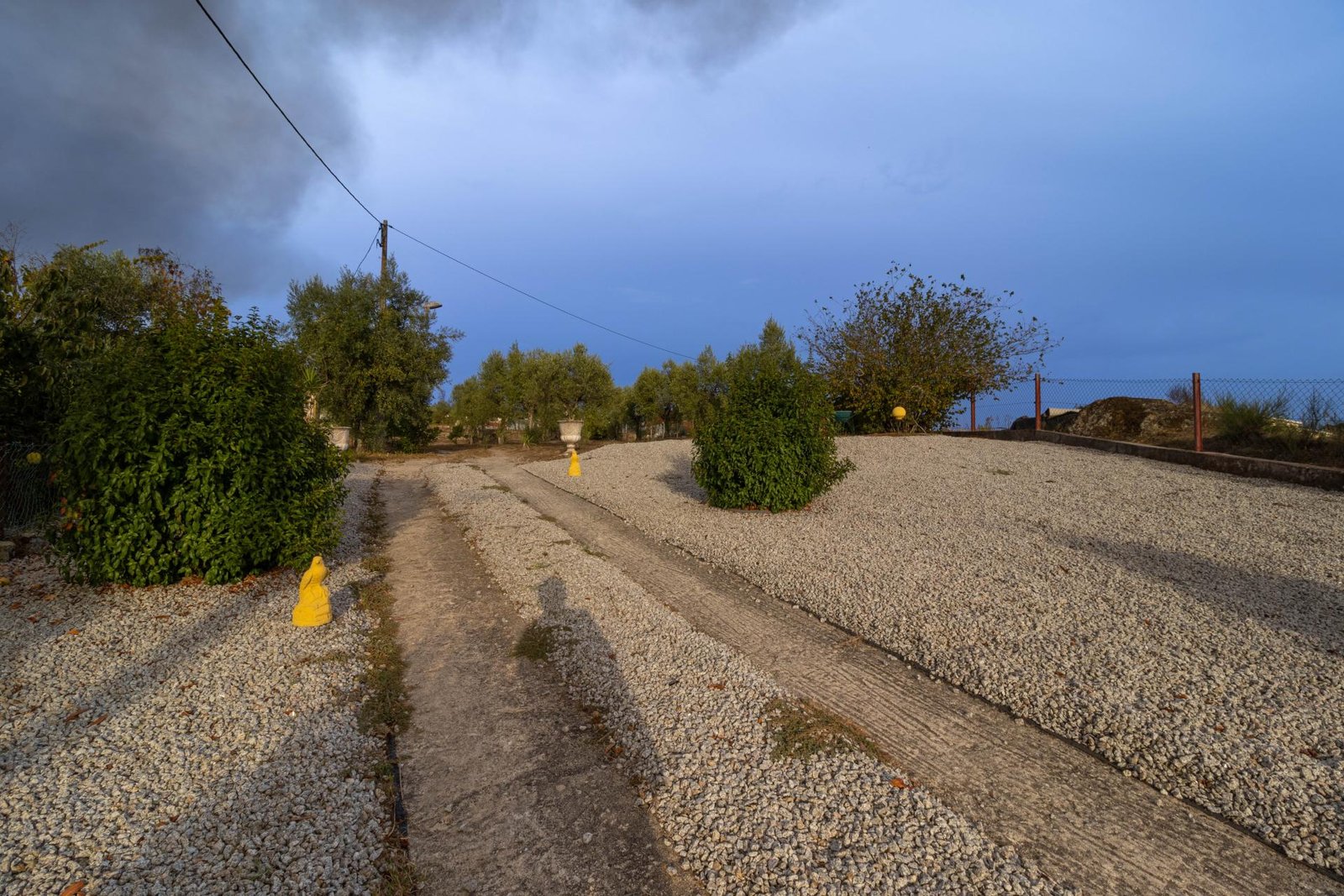 O terreno inclui 60 oliveiras, vinha e uma grande variedade de árvores de fruto, proporcionando um ambiente fértil e produtivo, com vista para a Serra da Estrela.